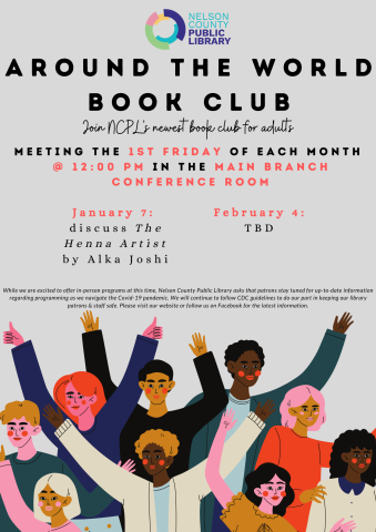 If you enjoy exploring other cultures and learning about diverse experiences, our Around the World Book Club may be a great fit for you! Join us the 1st Friday of each month at noon in the Main Branch Conference Room to discuss a book written by an author from outside of the US. We've thus far read works by writers from Cameroon and Chile with India next on our list for our January book, The Henna Artist by Alka Joshi. Stop by the Main Branch ahead of time to pick up our current selection (please note that there may be a waitlist).