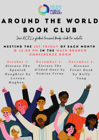Travel with us around the world! Our Around the World Book Club, led by Kimberly Burton, meets the 1st Friday of each month in the Main Branch Conference Room at 12:00 pm to discuss books by authors from all around the globe. At our October 7th meeting, we'll discuss The Spanish Daughter by Lorena Hughes (also available on Hoopla and Libby/OverDrive).