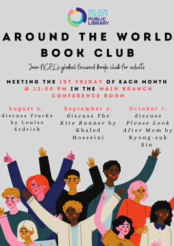 Travel with us around the world this summer! Our Around the World Book Club, led by Kimberly Burton, meets the 1st Friday of each month in the Main Branch Conference Room at 12:00 pm to discuss books by authors from all around the globe.