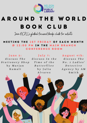 Our Around the World Book Club, led by Kimberly Burton, meets the 1st Friday of each month in the Main Branch Conference Room at 12:00 pm to discuss books by authors from all around the world. At our June 2nd meeting, we'll discuss The Stationery Shop by Iranian author Marjan Kamali (also available on Libby).