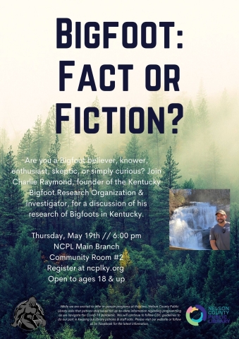 Are you a Bigfoot believer, knower, enthusiast, skeptic, or simply curious? Join Charlie Raymond, founder of the Kentucky Bigfoot Research Organization & investigator, for a discussion of his research of Bigfoots in Kentucky. Registration required. Open to ages 18 & up.