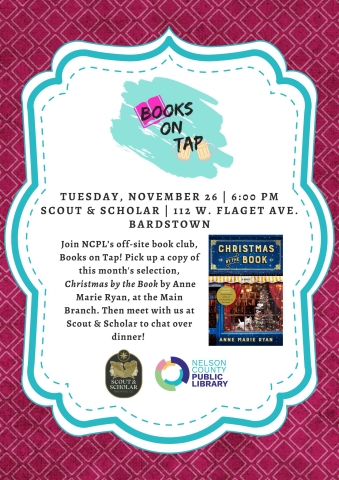 Books on Tap, our off-site group led by Kimberly Burton, meets the last Tuesday of each month. Join us on November 26th at Scout & Scholar Brewing Co. (112 W. Flaget St., Bardstown) for a discussion of Christmas by the Book by Anne Marie Ryan. Copies will be available at the Main Branch when it reopens to the public.