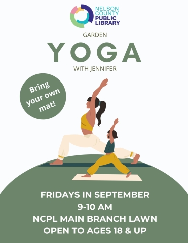 Meet us on the lawn for Garden Yoga with Jennifer! We'll meet Fridays this September at 9 am on the NCPL Main Branch lawn for outdoor yoga sessions with Jennifer Hurst. Be sure to bring your own mat! Open to ages 18 and up. No registration required.