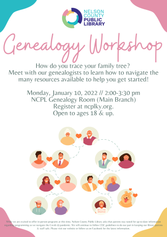 How do you trace your family tree? Meet with our genealogists to learn how to navigate the many resources available to help you get started! Open to ages 18 & up.