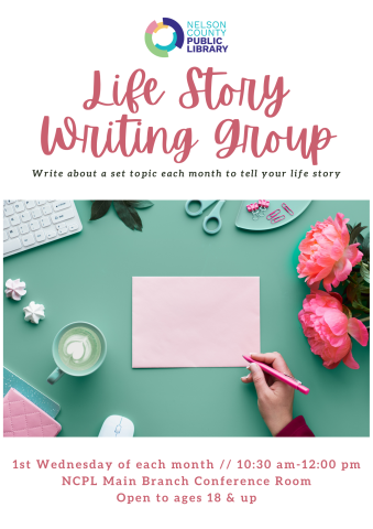 Calling all writers! Add our Life Story Writing Group to your monthly schedule. This program meets the 1st Wednesday of each month at 10:30 am-12:00 pm in the Main Branch Conference Room. Our next session will be held June 5th. Be sure to bring a notebook and a pen. Open to ages 18 & up.