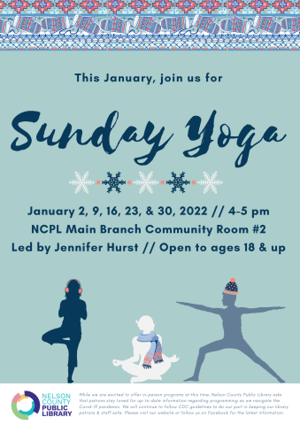 Join Jennifer Hurst for our Winter Sunday Yoga series this January at the Main Branch!